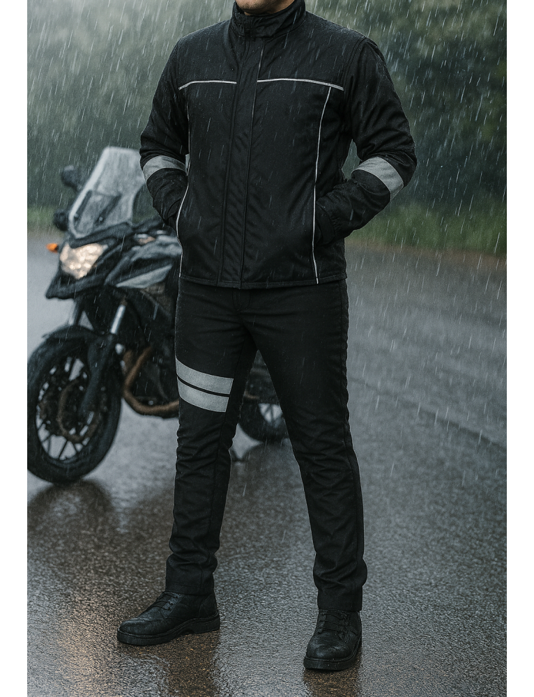 Motorcu Kışlık Su ve Rüzgar Geçirmez Reflektörlü Elyaflı Mont Pantolon Takım