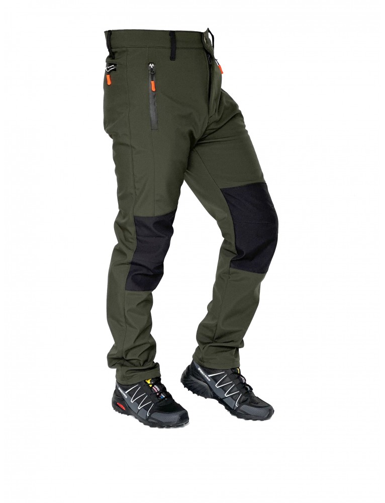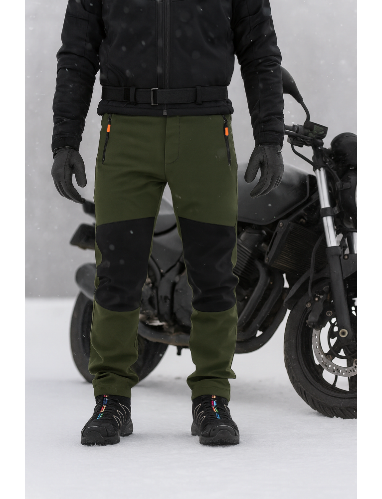 Kışlık Haki Siyah Softshell Outdoor Motorcu Pantolonu – Su ve Rüzgar Geçirmez Polar İçli